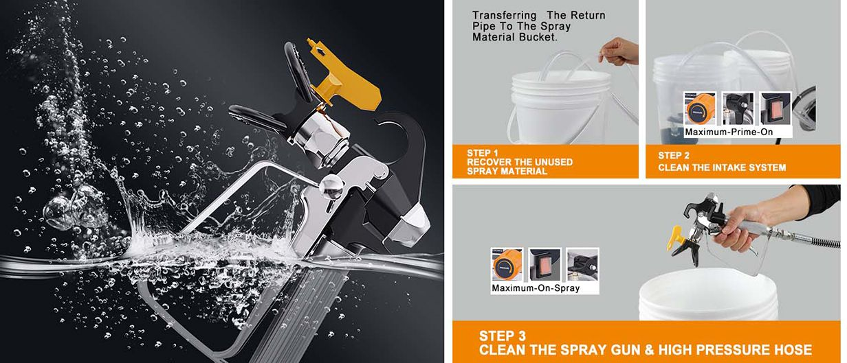 🔹 Intelligent Control: Exclusive three-stage pressure adjustment (500/1500/2900 PSI), one-button switching, supports direct connection to 1 or 5-gallon paint buckets for more efficient continuous operation.