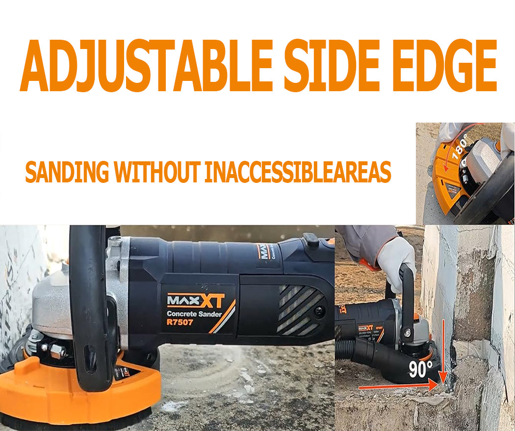 [Adjustable Side Design] :The grinding wheel features an adjustable angle on the side, allowing for close-to-vertical wall grinding, significantly reducing hard-to-reach corner areas and enabling more comprehensive and efficient concrete grinding.