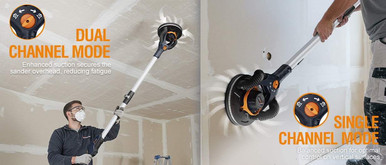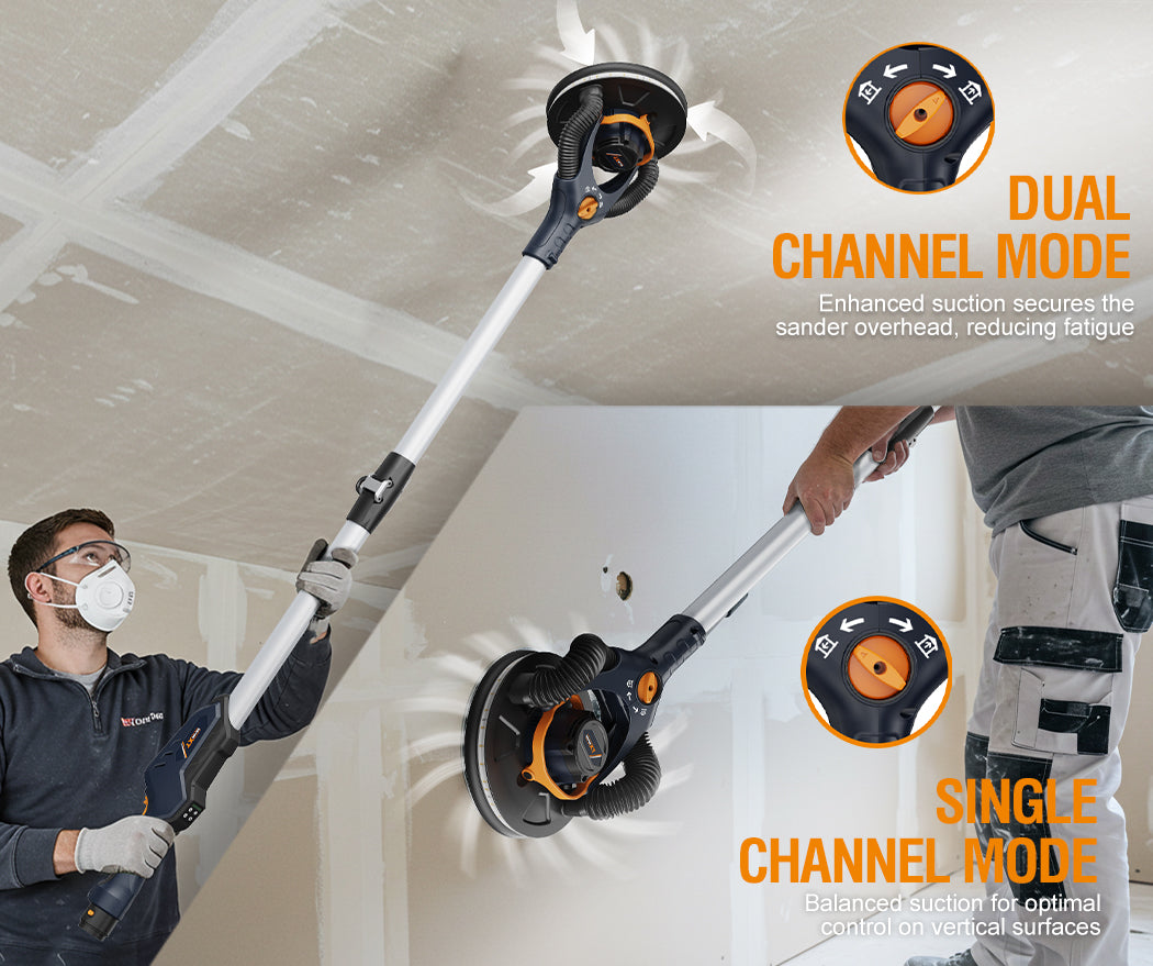 [Lightweight and Durable]: At only 3.2 pounds, it reduces fatigue. The dual-mode trigger supports both click and continuous operation, making ceiling sanding effortless.