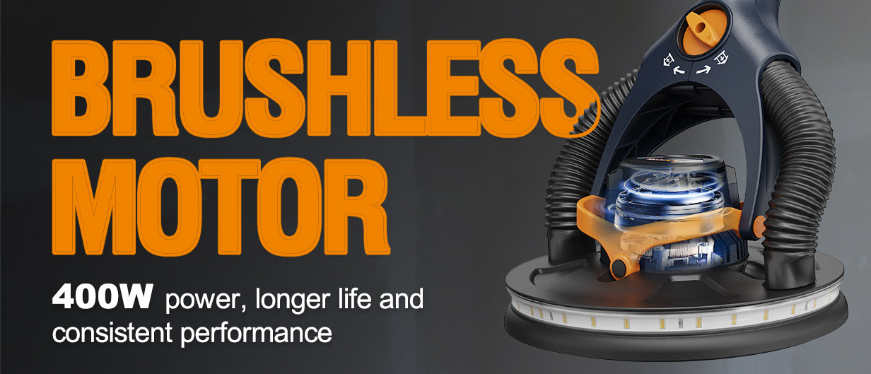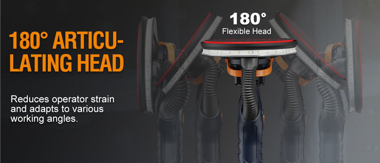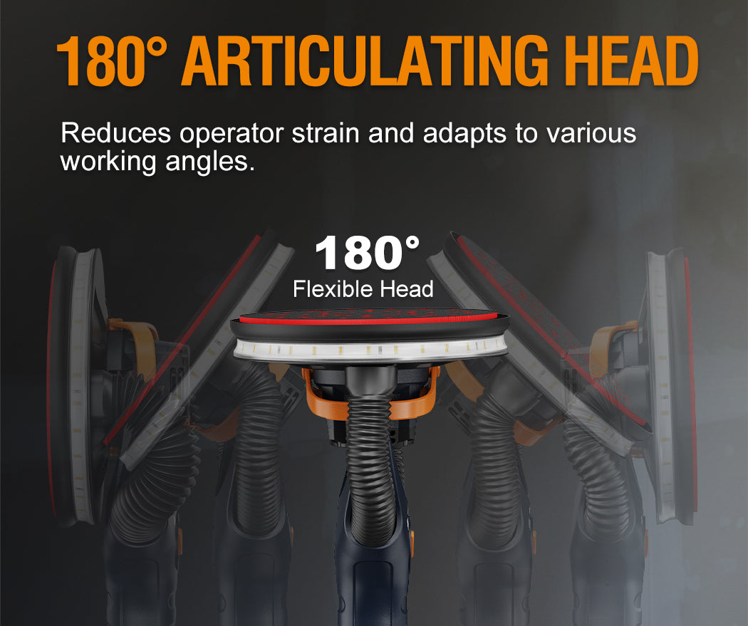 The 0°-180° adjustable pivoting head makes sanding different areas easy, for easier ceiling sanding, ensuring an efficient sanding experience.
