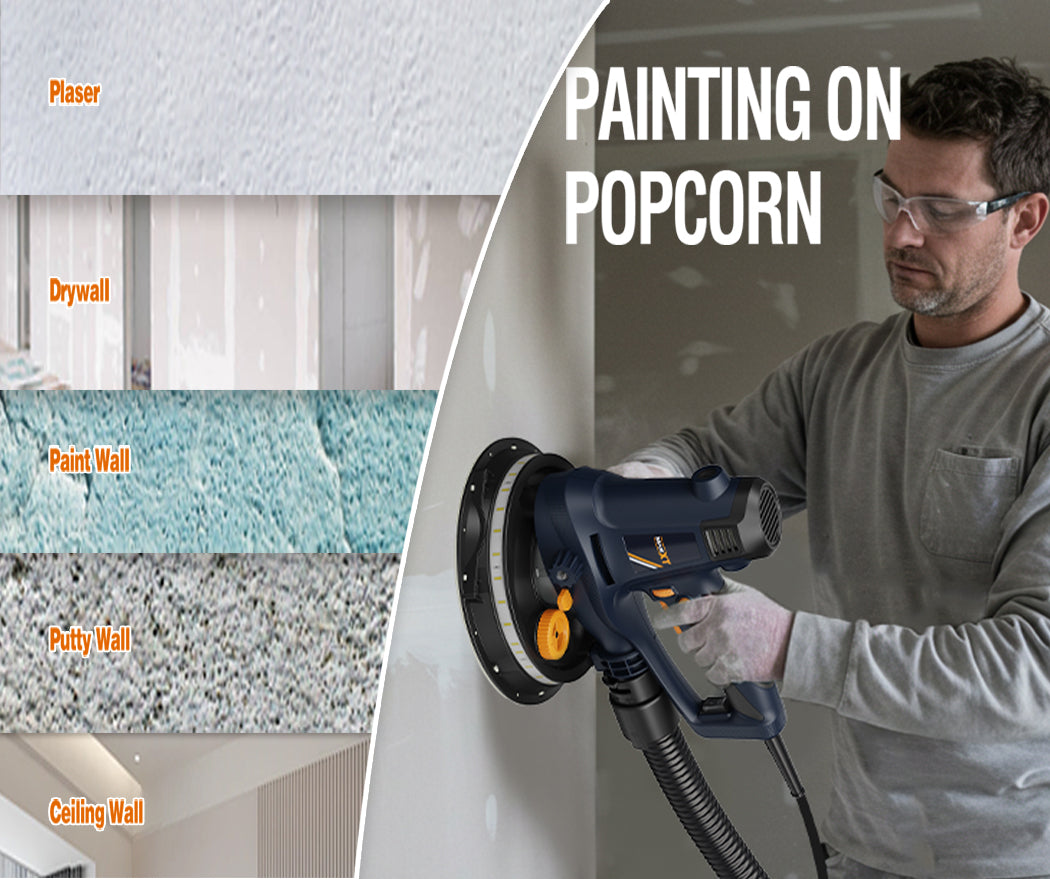 This machine is mainly used for sanding walls, especially drywall panels. It can sand gaps between drywall panels, as well as popcorn walls, plaster walls, paint walls, putty walls, and ceiling walls.