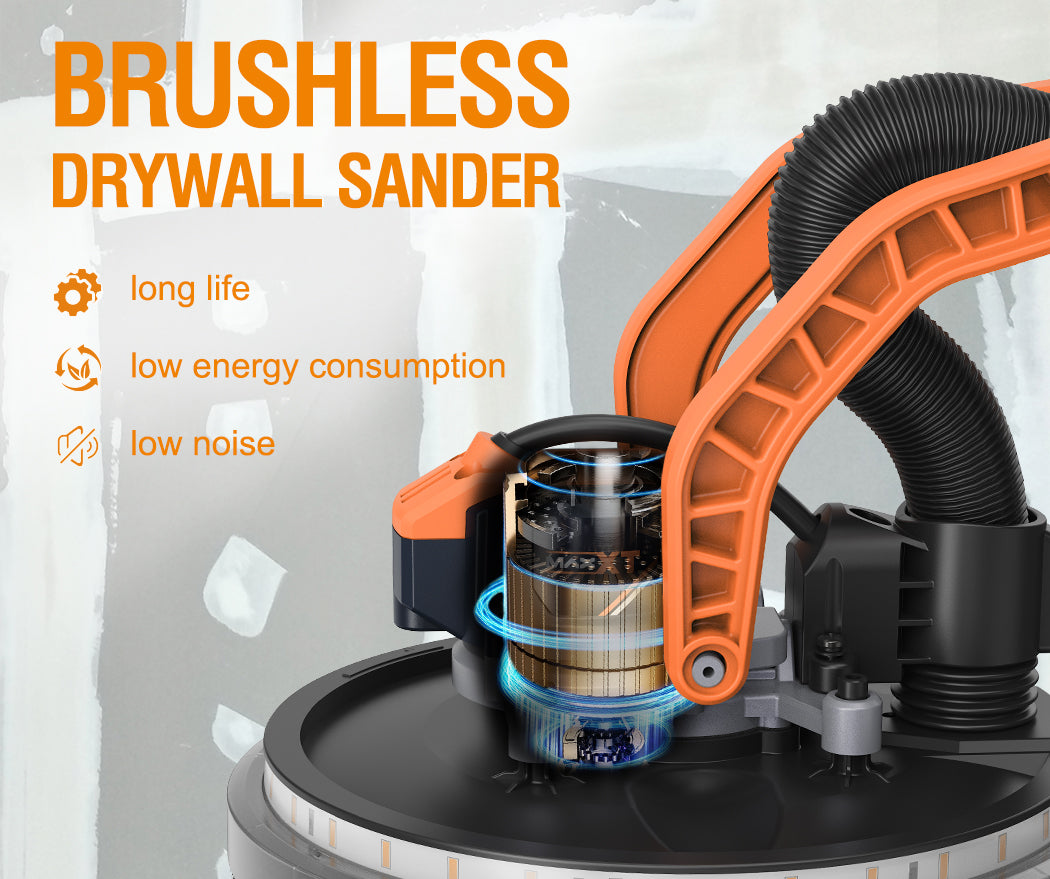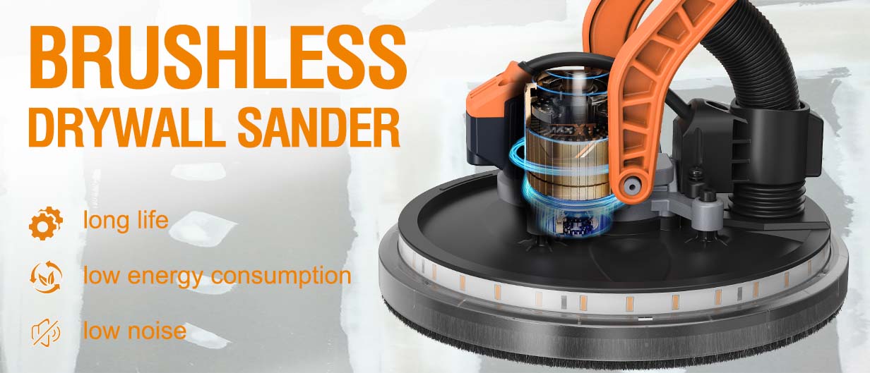 MAXXT Brushless Orbital Drywall Sander, 550W Powerful Constant Speed Electric Drywall Sander, 6 Variable Speed 600-1200RPM Foldable Sander Tool, 360° Led Light