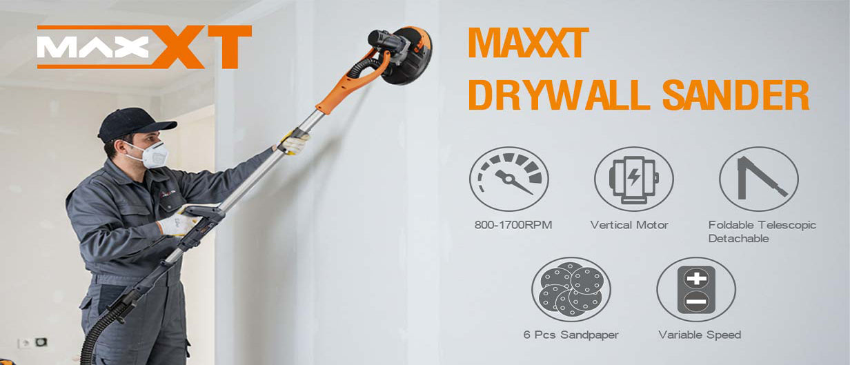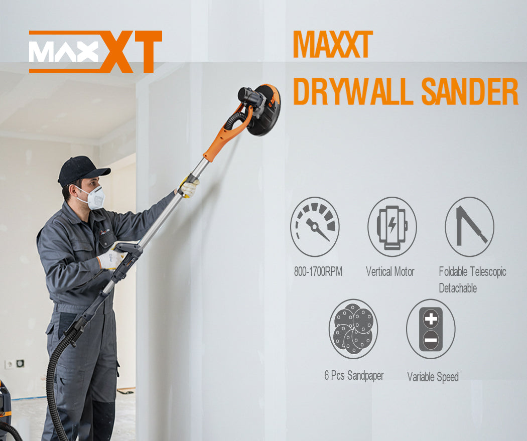 MAXXT Drywall Sander, Lightweight Popcorn Ceiling Removal Tool, 5 Variable Speed Foldable Telescopic Electric Drywall Sander, 800-1700RPM Vertical Power Ceiling Sander