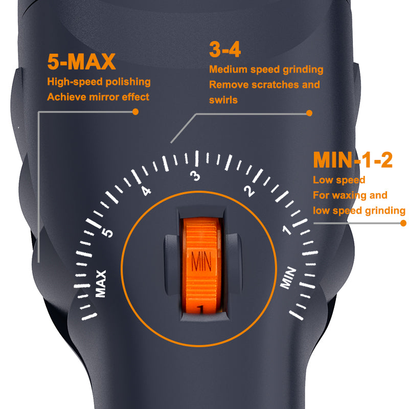 - Infinitely variable speed, adjustable range from 600-3000 RPM for different materials and applications