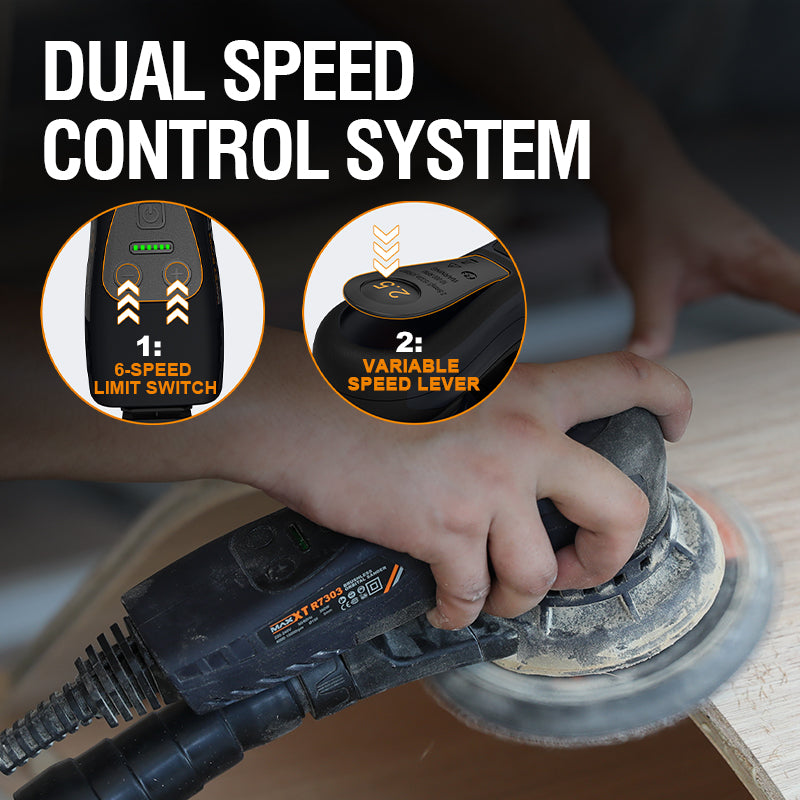 [Dual-Mode Precision Speed Control] Offers two speed control modes: stepless throttle-operated speed adjustment and six fixed speed settings, precisely tailored to your specific sanding needs.