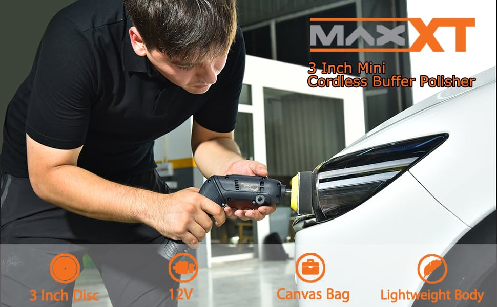 MAXXT Cordless Polisher is the ideal complement to larger polishers,lightweight and handy for use on smaller areas.With wide applications for automobile and home when working with different accessories. Sanding paper for coarse sanding,foam pads for removing light scratches and swirl, woolen pad for paint polishing, microfiber Pad for waxing the paint surface, polishing cone for car wheel hub care