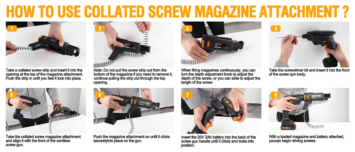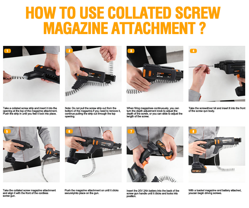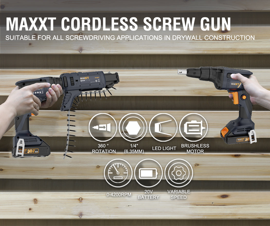 20V Drywall Screw Gun Brushless, MAXXT Cordless Lithium-Ion Brushless Self Feeding Drywall Screwdriver Autofeed 5000RPM with Collated Drywall Attachment(Included 2.0Ah Battery and Charger)