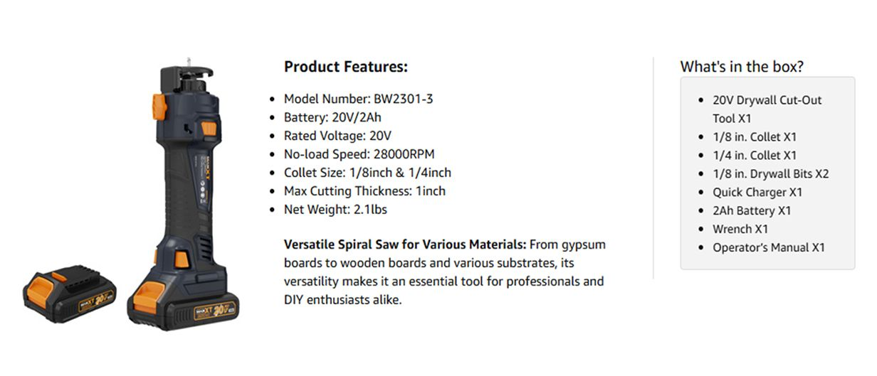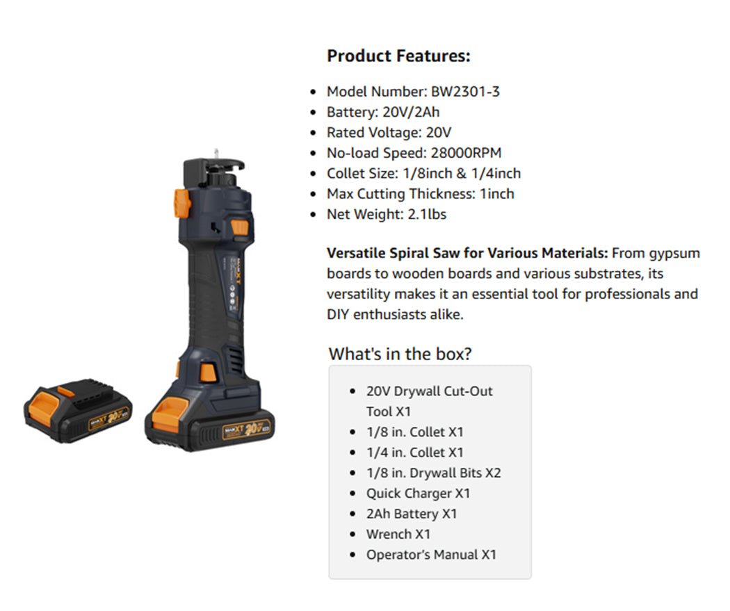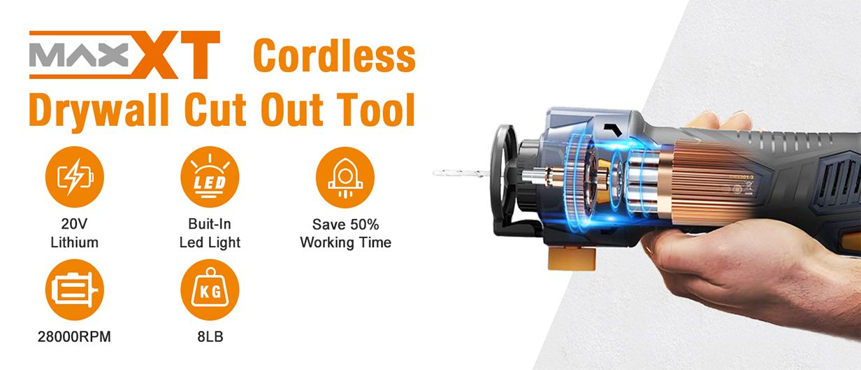 MAXXT 20V Cordless Drywall Cut Out Tool with 2.0Ah Battery and Quick Charger