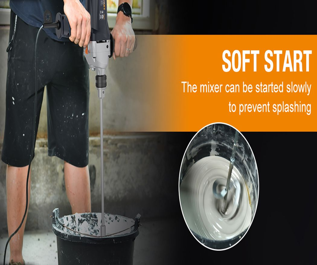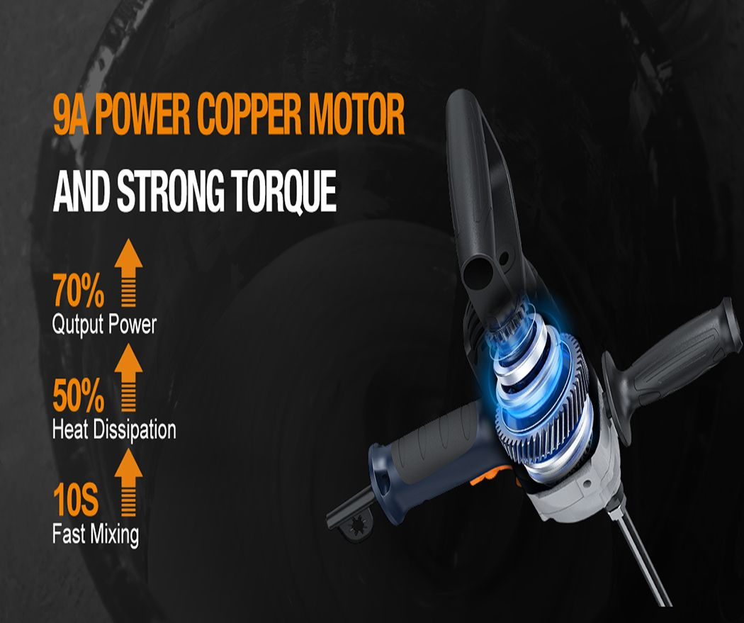 [Powerful Copper Core Motor] :Equipped with a 9A copper core motor, it delivers efficient and powerful performance, serving as both a professional mixer and a high-power electric drill, significantly improving mixing efficiency.