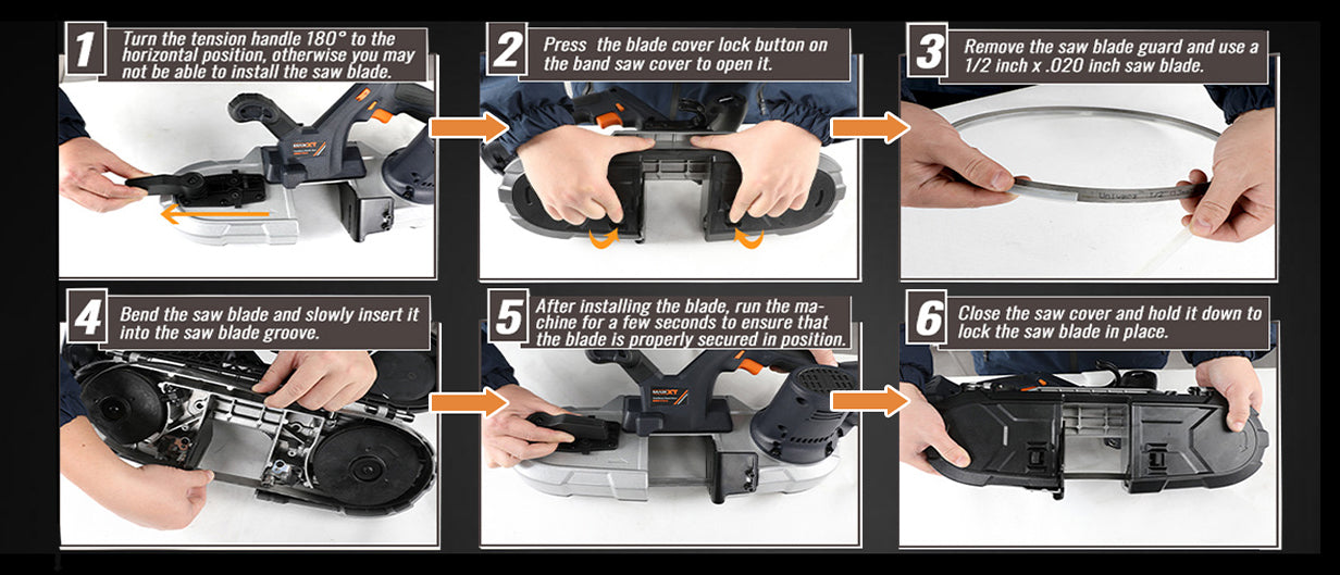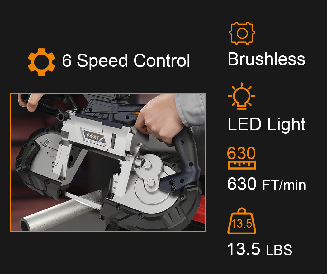 Bandsaw Cordless, MAXXT 2-1/2 inch Brushless Power Metal Bandsaw 20V MAX 2.5" Cutting Capacity 6 Speeds Adjustable, No Hot Sparks When Cutting Metal