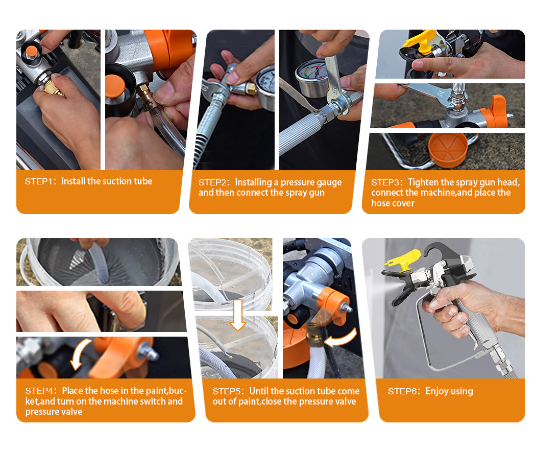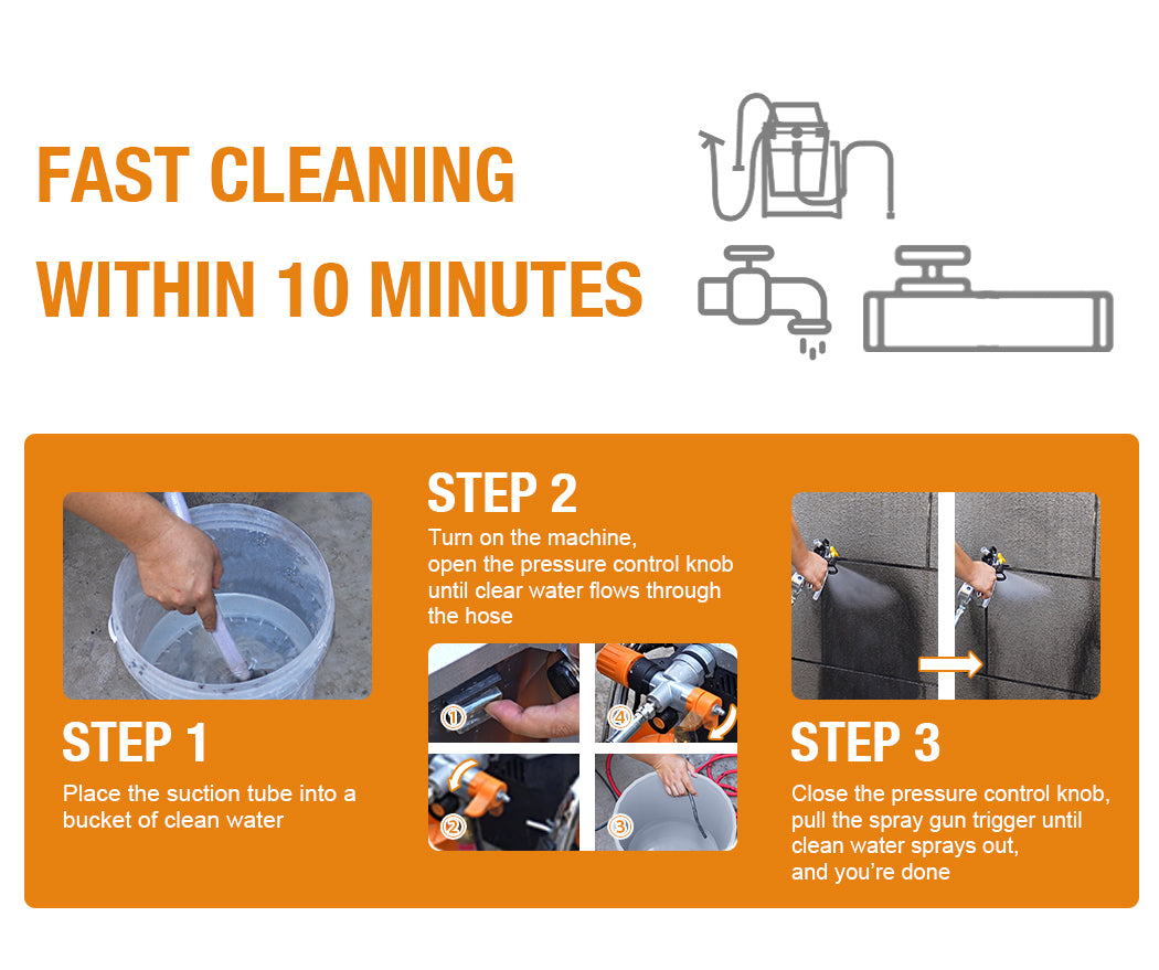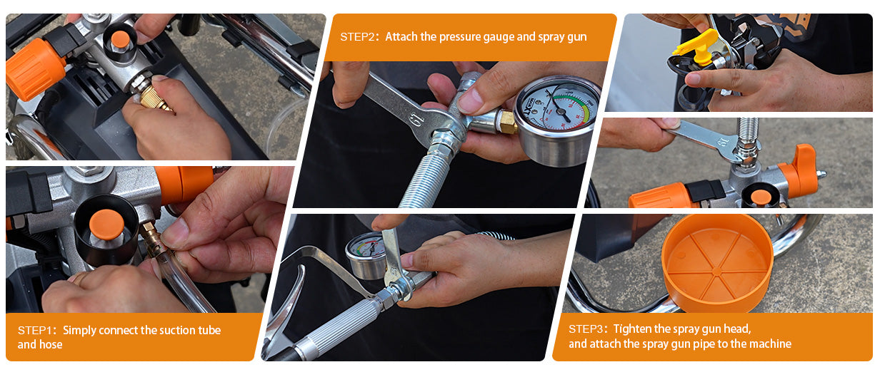 🔹 Three-Stage Pressure Adjustment: Three adjustable pressure settings (500/1500/3200 PSI), connects directly to the paint bucket for continuous, efficient, and time-saving spraying.