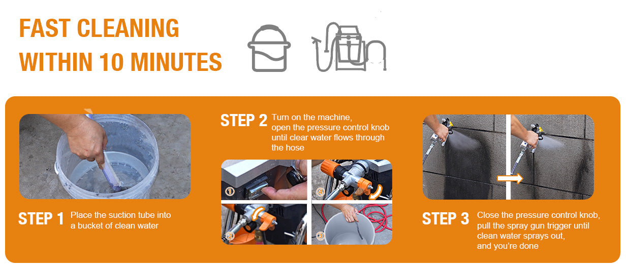 With a powerful 1300W motor, it can efficiently and evenly spray paint on indoor and outdoor walls, fences, and furniture.