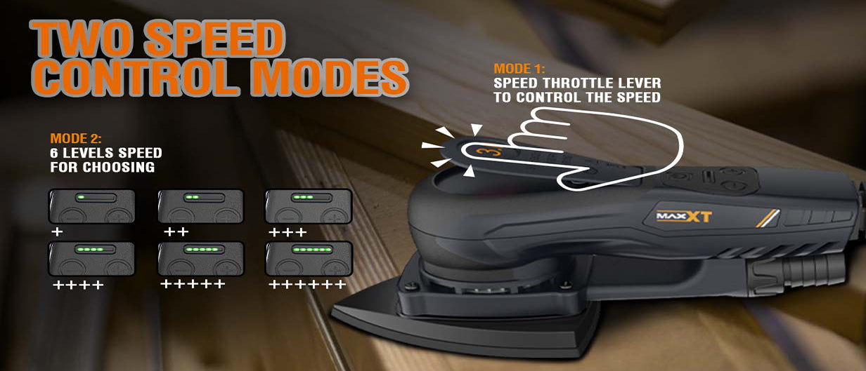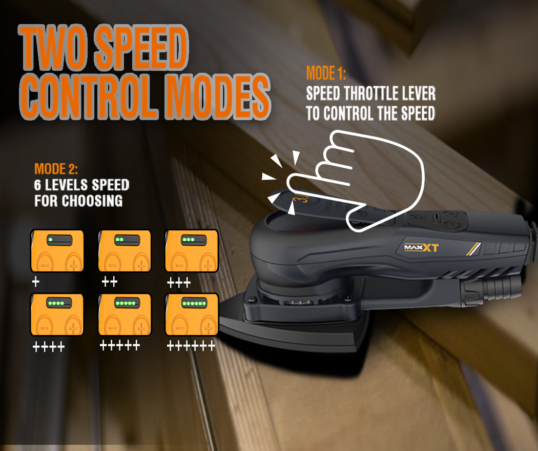 1. Dual-speed control allows precise adjustment of sanding speed to suit your needs.