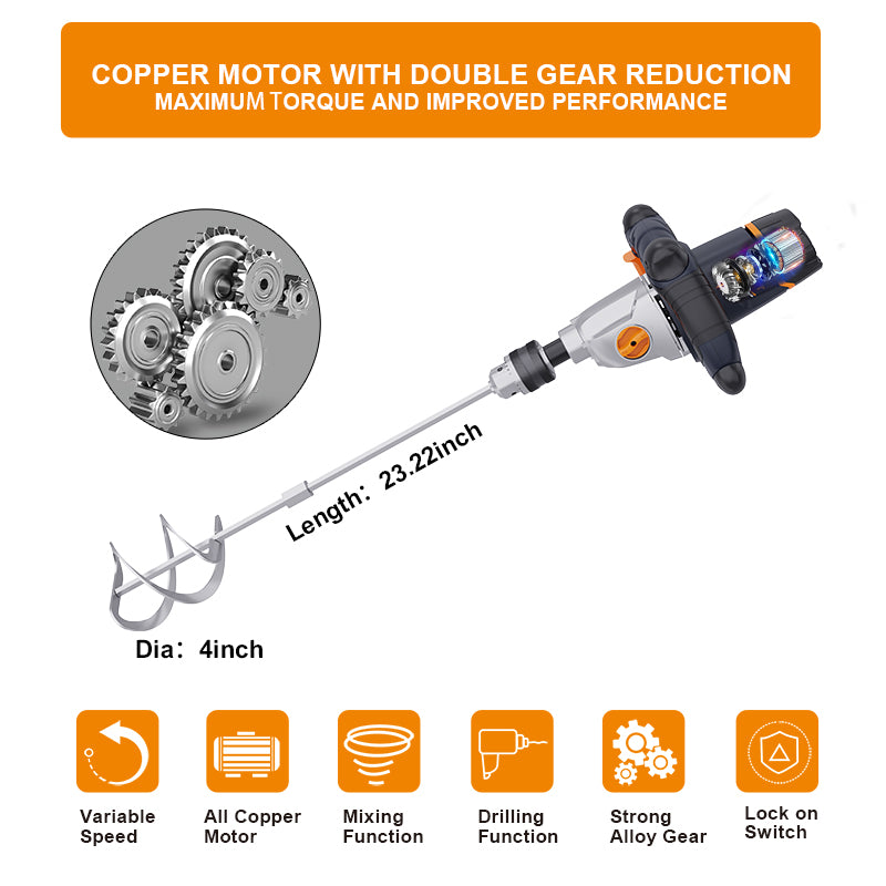 - Variable Speed & Lock-On Button: Supports stepless speed adjustment up to 800 RPM, and features a lock button for continuous mixing and easy operation.
