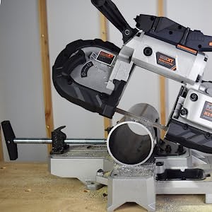 MAXXT Portable Band Saw with Base 10-Amp 5-Inch Deep Cut Variable Speed Handheld Portable Automatic Multi-Purpose Cutting with Carrying wheels